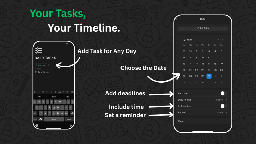 But Daily Tasks is different. You just open it on your phone, tap “add task,” and write what you need to do — nothing more. It’s fast, simple, and designed to feel natural so your brain doesn’t resist it. The easier it feels, the more you’ll use it — and the more you’ll get things done.