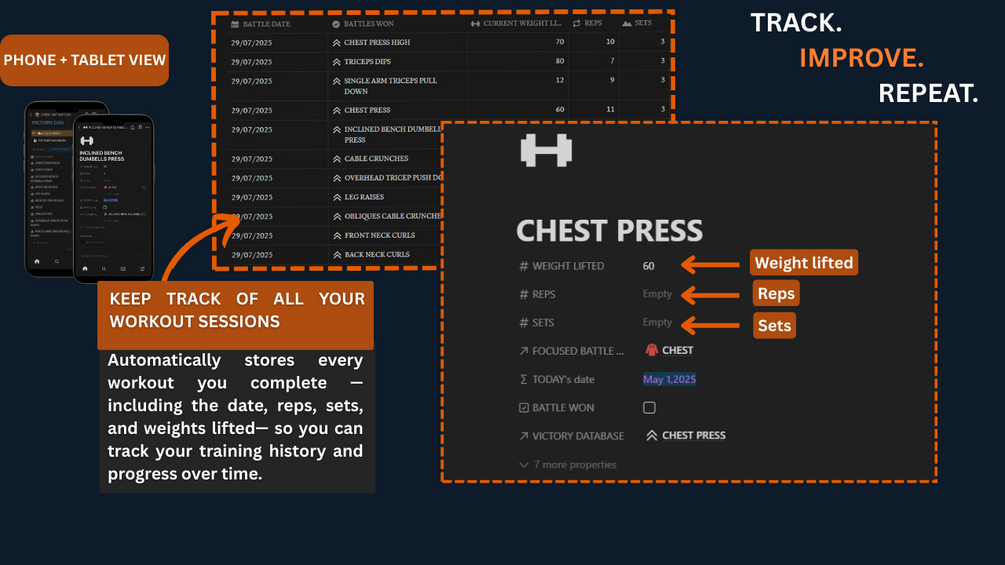 ✅ Log your weights, sets, reps, and lifts — and track every workout you’ve done, forever