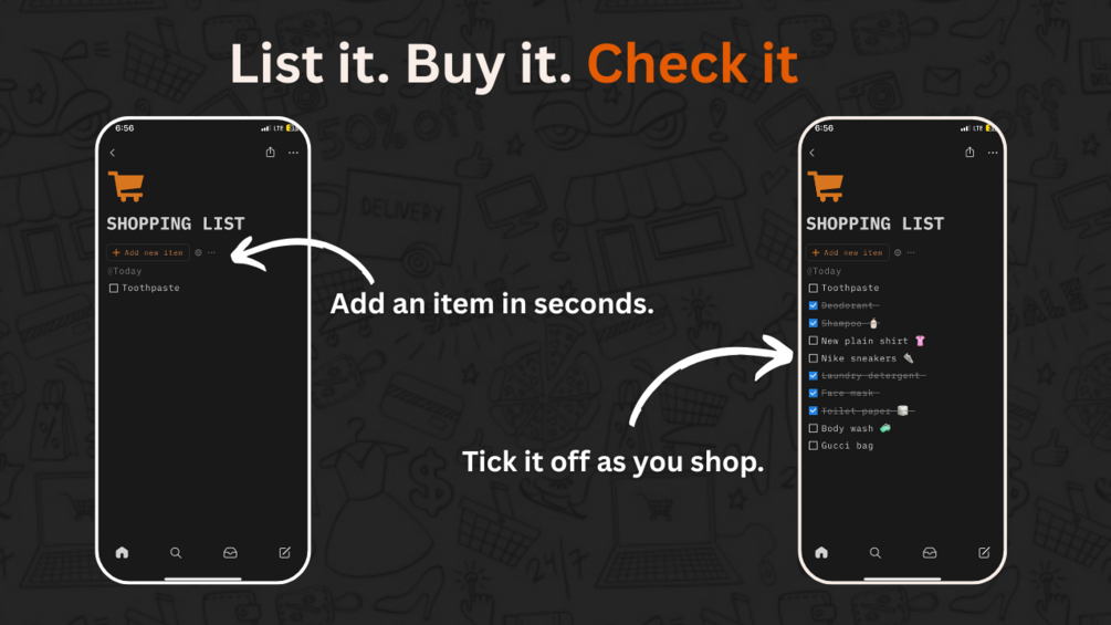 Sure, you could use paper — but your phone is always with you. And with this system, you can add items anytime you remember something.